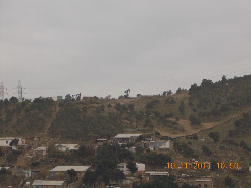 Видны нефтяные качалки. |