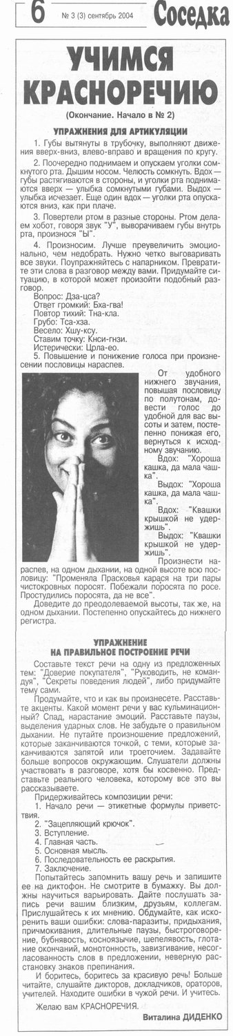 Номер 6/2004. "Учимся красноречию2". Начало.