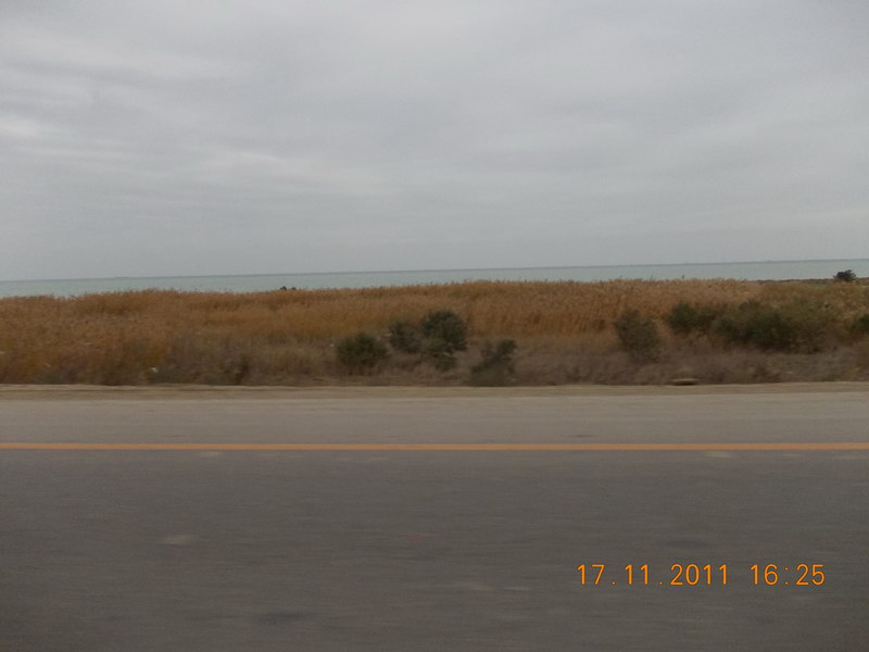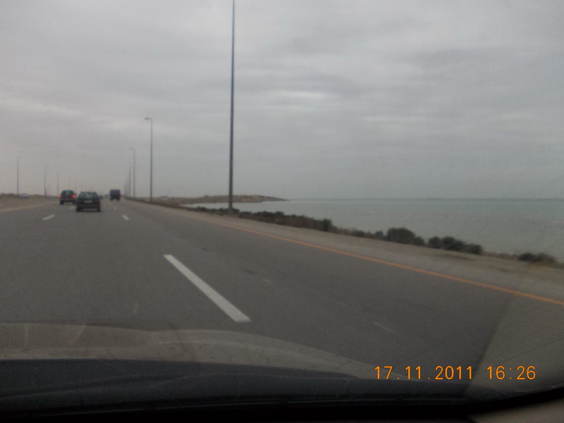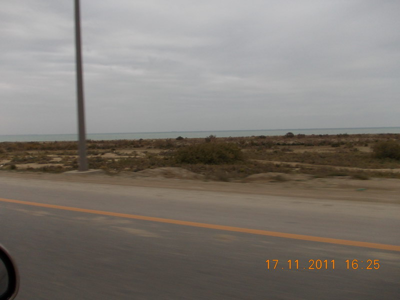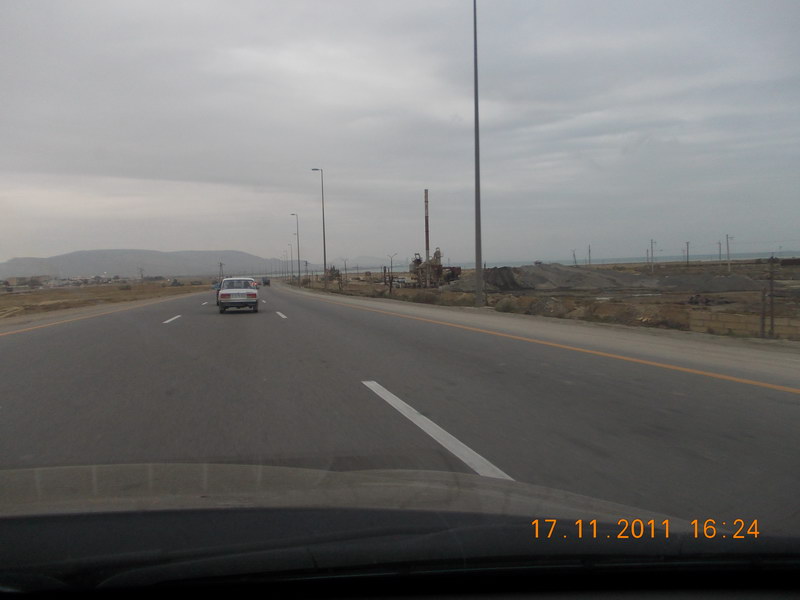 Дорога от Гобустана к Баку вдоль Каспийского моря. |
