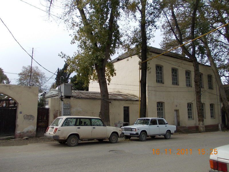 Интернациональная средняя школа №1 имени Карла Маркса. Ворота справа. 2-х этажное здание - учительская. |
