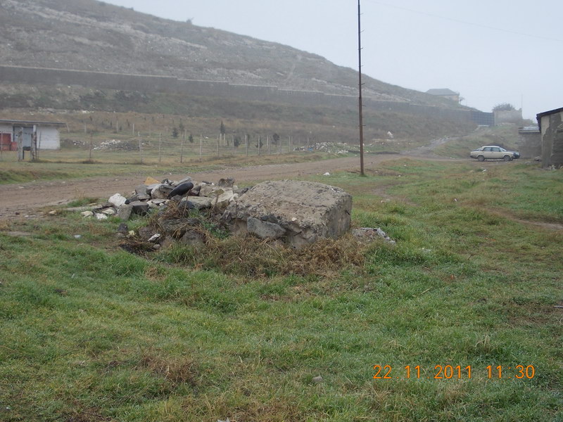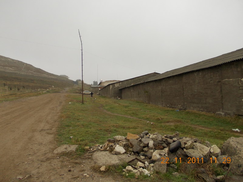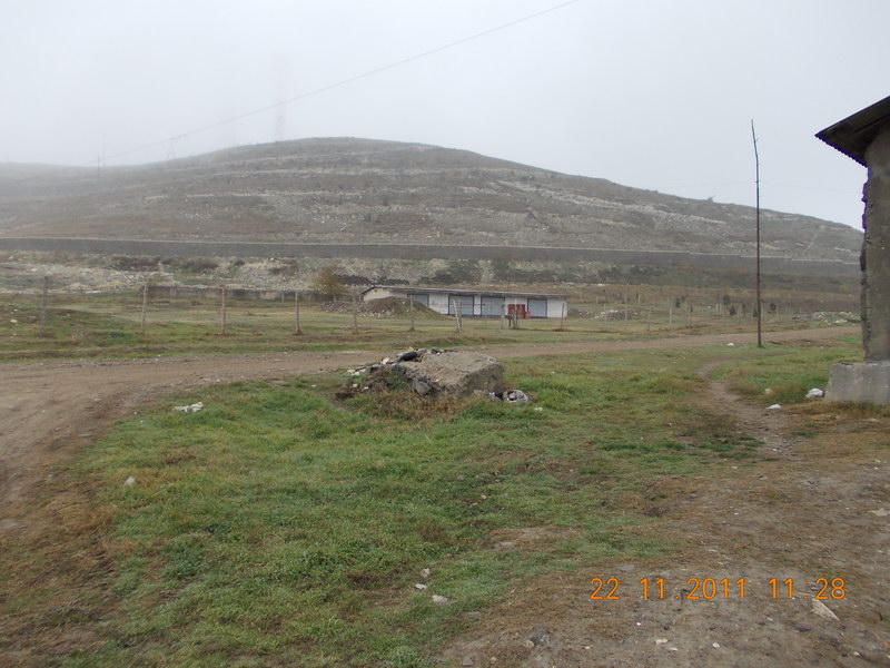 Охрана складов так и осталась - сместилась левее. Впереди - ТВ вышка на горе. И камни - остатки огромной конструкции перед домом. |