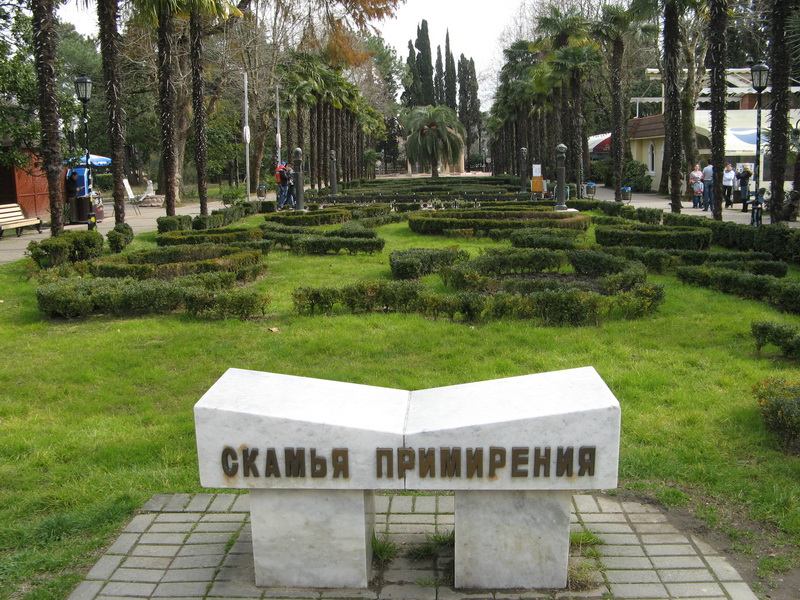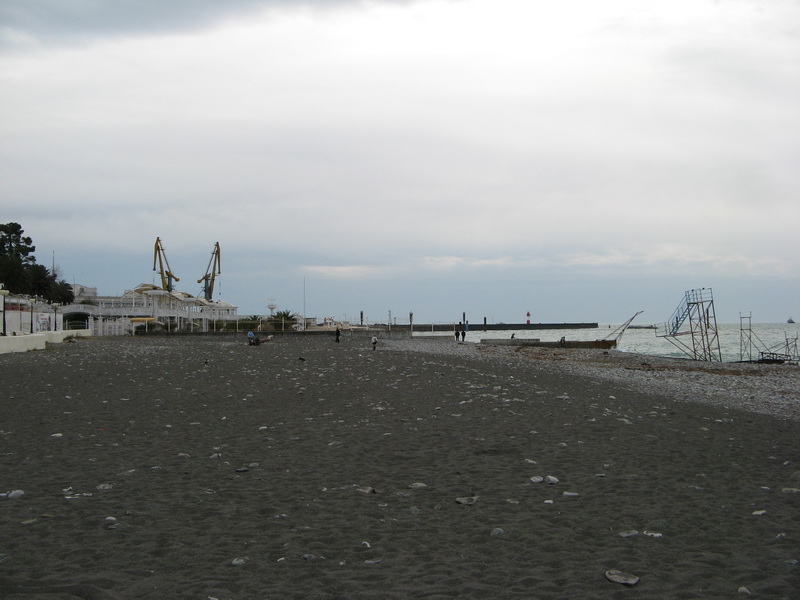 Вышли из парка и идем через реку Сочи к западному пляжу.